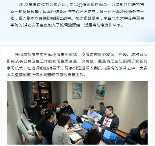 专业育人显成效——北大公卫学子在内蒙抗疫一线