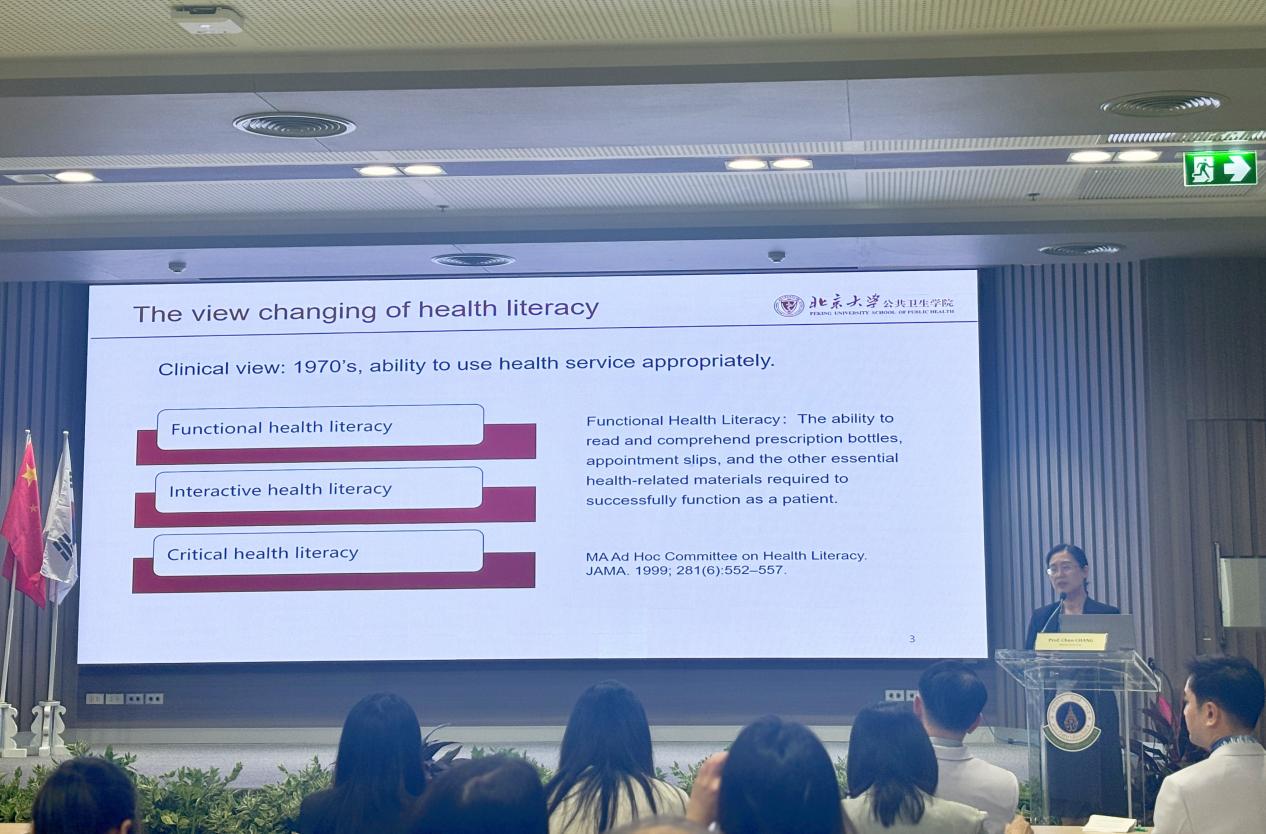 常春教授以“Health Literacy Development in China”为题,作了大会第一场主旨报告。她系统阐述了中国在全民健康素养提升工作中积累的丰富经验、取得的显著成就以及未来的发展方向。常春教授指出,近年来,中国政府通过政策引导、社区动员和多部门协作,构建了全方位、多层次的健康素养提升体系,显著提升了公众的健康素养水平。她强调,健康素养的提升不仅是健康中国战略的重要组成部分,也是实现全民健康覆盖的关键环节。她呼吁各国在健康素养提升方面加强合作与交流,共同应对全球性健康挑战。
