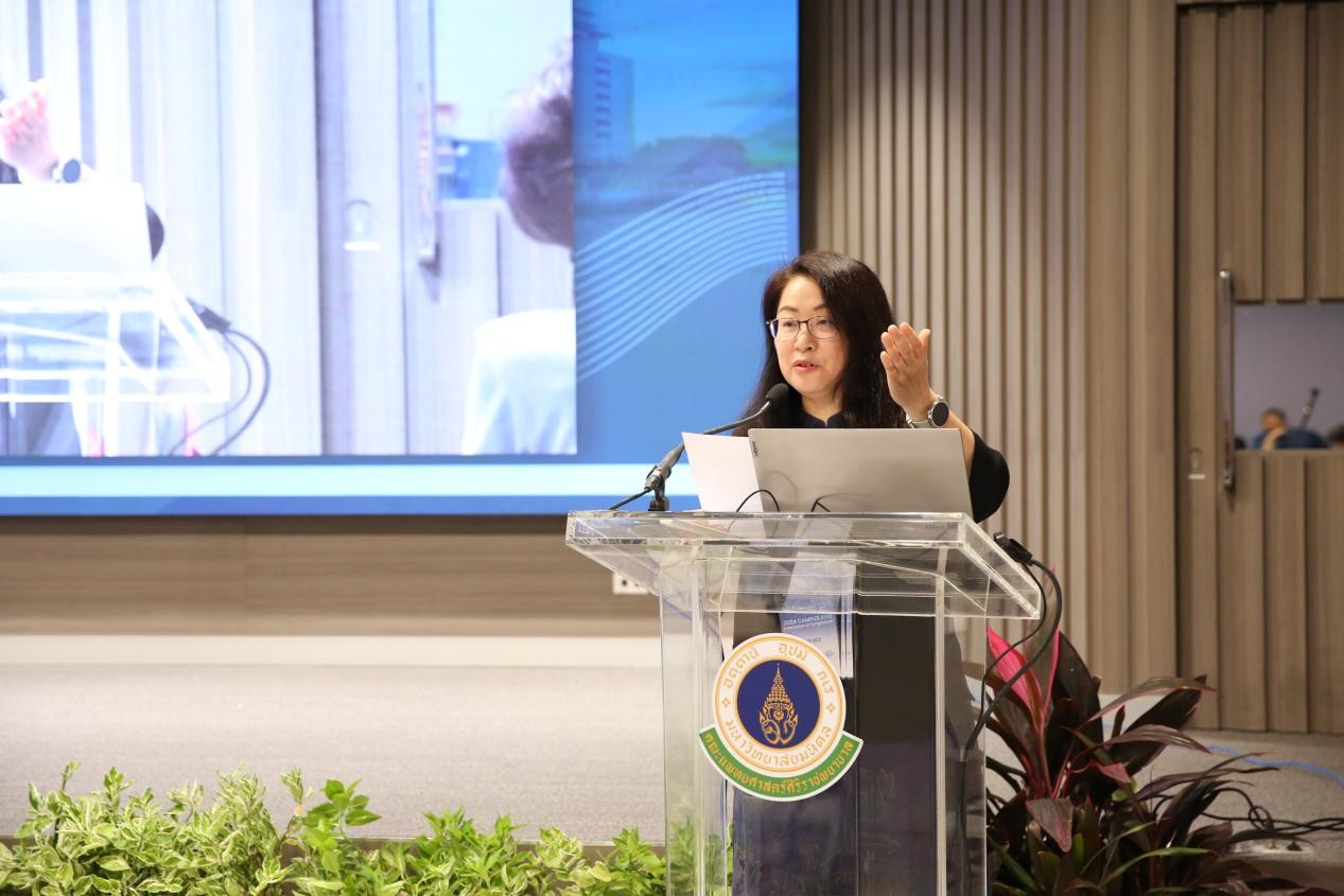 诗里拉吉医院院长Apichat Asavamongkolkul教授代表泰方向各高校师生代表的到来表示诚挚欢迎,并向研讨会的顺利召开表示热烈祝贺!玛希隆大学校长莅临致辞,各项目高校代表先后致辞。