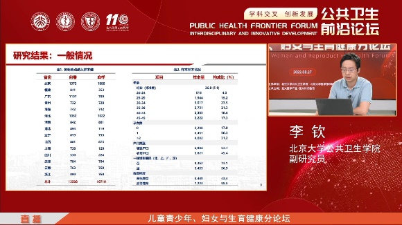 联合北京大学医学部科研处于8月26~27日共同举办了《“学科交叉,创新发展”公共卫生前沿论坛 》,旨在加强学术交流、促进公共卫生发展。作为公共卫生前沿论坛的重要部分,“儿童青少年、妇女与生育健康分论坛”于2022年8月27日(周六)8:30-17:30以线上和线下相结合的方式召开。本次分论坛的主题是“新时期儿童青少年、妇女与生育健康热点问题”,目的是邀请国内外相关领域专家学者围绕新时期国内外儿童青少年、妇女与生育健康领域面临的热点和前言问题进行广泛交流,促进北京大学儿少、妇幼与生育健康学科群建设,也为兄弟院校相关专业学科群的发展提供借鉴。分论坛分上、下午两个模块,上午是国内外资深专家专场,下午是青年学者专场。共邀请了18位国内外相关领域嘉宾进行了演讲,邀请了6位资深专家进点评。