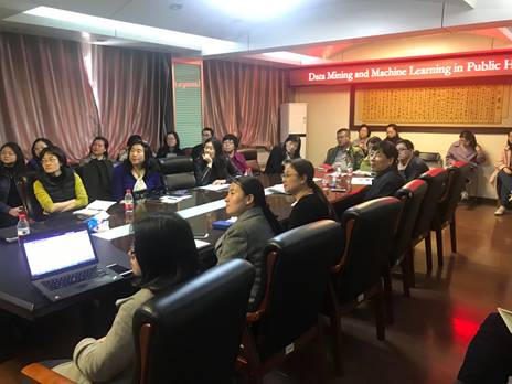 本次讲座题目为:Data Mining and Machine Learning in Public Health(医疗卫生领域的数据挖掘和机器学习)。随着大数据时代的到来,传统统计学方法在面临非结构化数据等的各类挑战,而数据挖掘和机器学习成了当下处理样本量较大或维度高的数据的热门方法。数据挖掘从多渠道来源的信息中识别数据的模式,找到看似无关的数据变量间的关系。