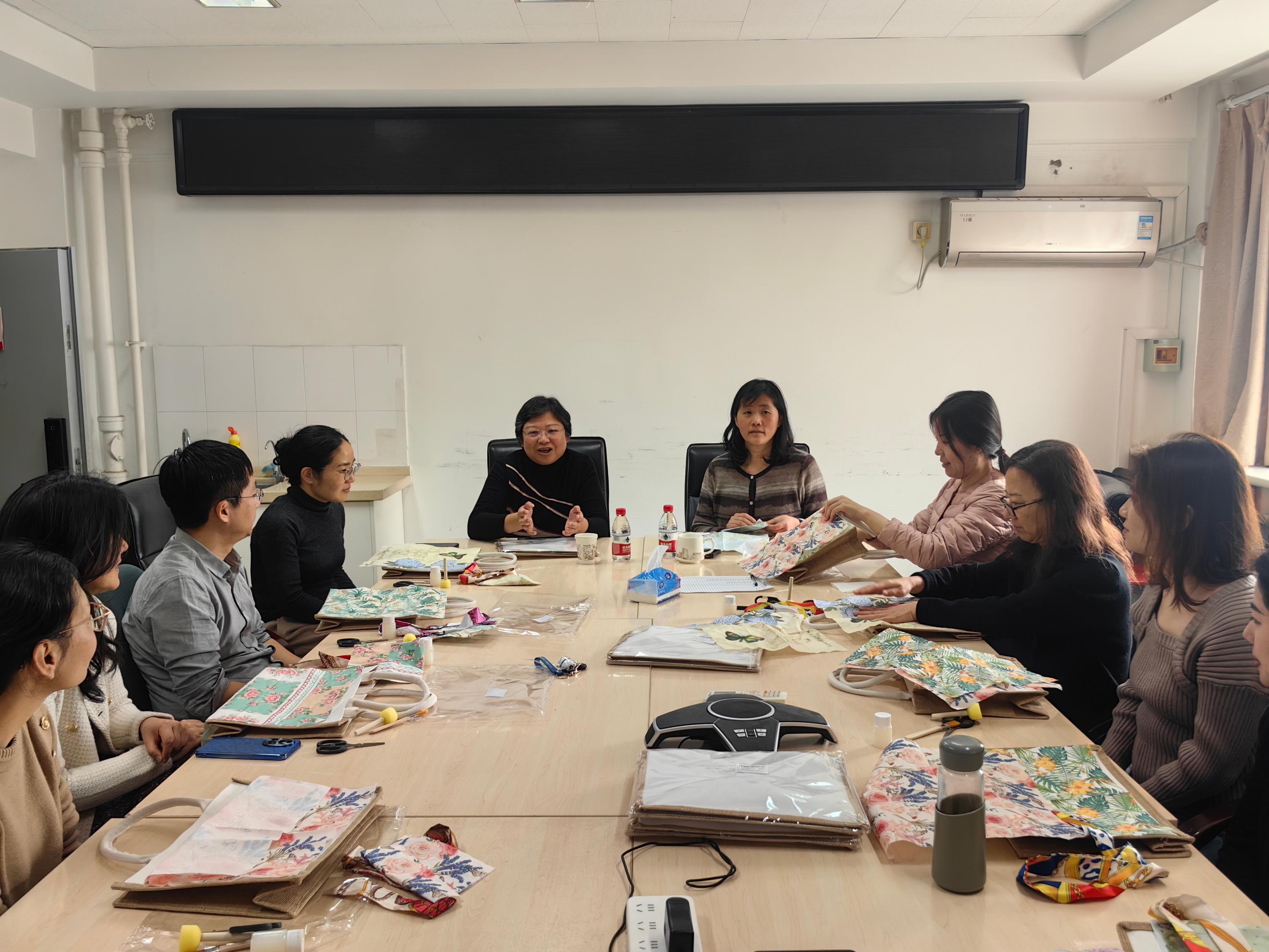 紧接着,学系教师们全身心投入,相互交流、默契配合,将一块块美丽的布料进行剪裁、装饰和粘贴,设计出了一款款各具特色的“蝶舞翩翩蝶古巴特包”。大家迫不及待地相互分享着自己的DIY作品,带着春天般灿烂的笑容合影留念。