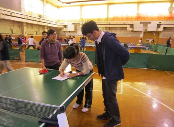 比赛首先由公卫教学办公室的朱燕萍老师致开幕词,然后由研究生会主席聂广孟、副主席袁灿和体育部副部许陆飞介绍比赛意义、流程和规则。随后比赛在聂广孟和袁灿主席的主持下正式开始。比赛开始后,随着黄色小球在乒乓球桌上的飞动,每一个发球、反击、防守都扣动心弦,不仅是男选手,女同学们也将他们的水平发挥得淋漓尽致,一个个漂亮的弧旋球不时引来阵阵掌声,一个个有力的扣球也不时引来阵阵叫好声,选手们用娴熟的技术和坚持不懈的精神将比赛推至高潮。
