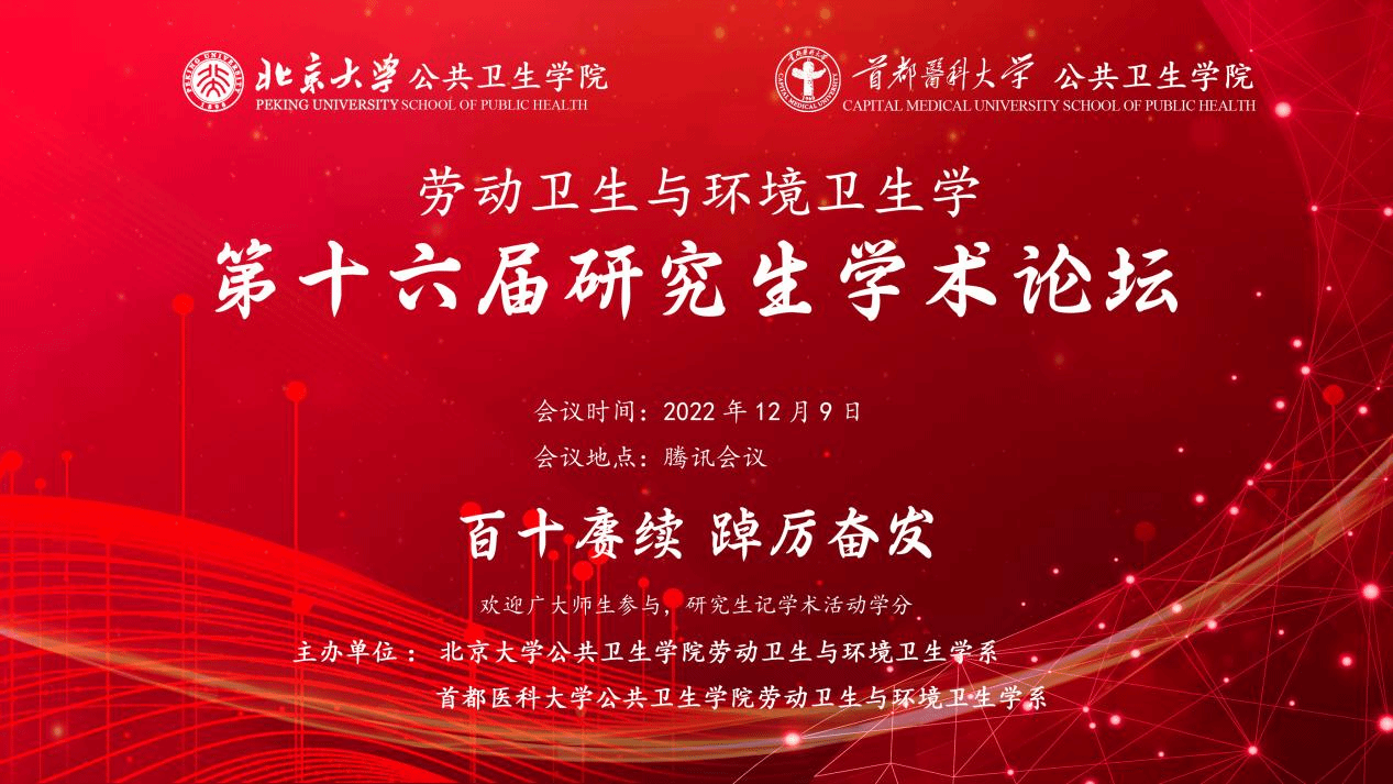 冬日暖阳增岁月,劳环科作满山河。值此北医110周年校庆的特殊之年,愿两校师生们在劳动卫生与环境卫生学教学和科研领域再接再厉,在各自的学业事业上再创佳绩。至此,2022年北京大学与首都医科大学劳动卫生与环境卫生学第十六届研究生学术论坛圆满结束。