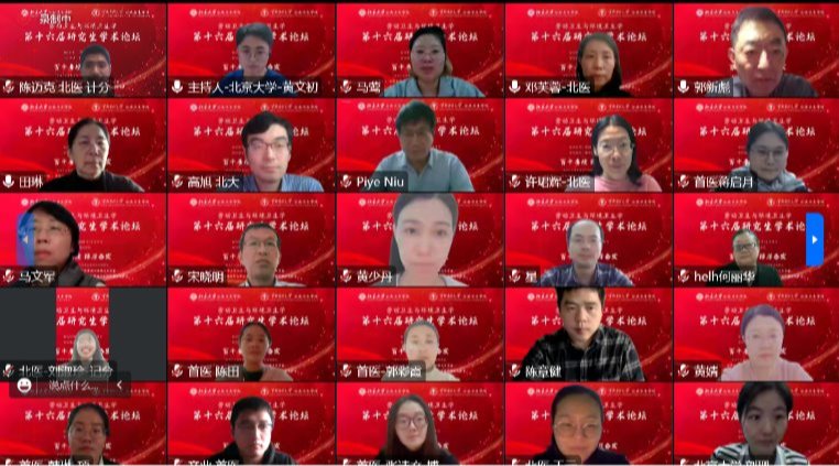 郭新彪教授致闭幕词。他表示本次论坛的报告十分精彩并让人意犹未尽,希望两校师生们未来能够继续加强交流与合作,也建议学生们不断提高视野与综合能力,取长补短,共同进步。来自首医公卫的田琳教授也发表感言,她对为筹备本次论坛辛苦付出的工作人员、对与会所有师生表示感谢,也表达了在疫情时代下师生们科研工作开展的艰辛不易但依然卓有成效。来自北医公卫的邓芙蓉教授点评到,本次论坛宏观与微观、现场与实验相结合,是一场酣畅淋漓的学术盛宴。来自北医的高旭老师从青年学者角度出发,认为每年一度独具特色的研究生论坛是两校的品牌活动,让两校师生受益匪浅。同时,大家共同建议今后还可通过不同形式的讲座形式进一步加强两校师生的交流。最后,田琳教授发出邀约,期待疫情早日结束,明年的研究生论坛上,两校师生能够相聚首医,面对面进行分享交流。