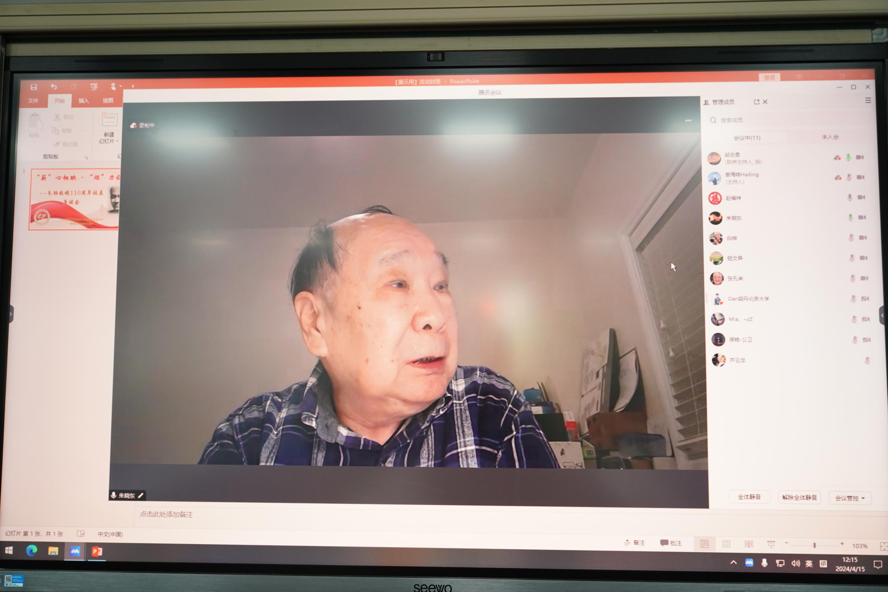 朱聃教授次子朱晓昆与幼子朱晓明作为家属代表现场发言,分享了关于朱教授在家庭中的温馨片段及他们对至亲的深情记忆,使得在场的听众能够更加全面而生动地理解到朱聃教授不仅是一位杰出的学者,更是一位充满温情的家人。朱聃教授的长子朱晓东(目前在加拿大)也在线上表达了对父亲的深情眷恋。