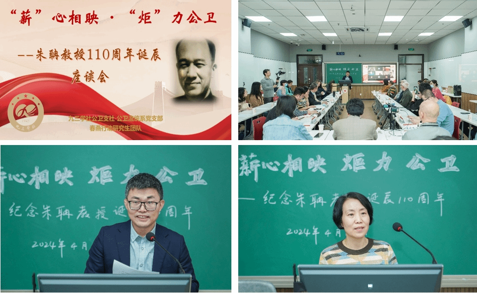 流行病与卫生统计系党支部书记吴涛教授、儿童青少年卫生研究所所长、党支部书记宋逸教授、朱聃教授家属,以及公卫支社和流统系师生代表50余人参加了座谈会。